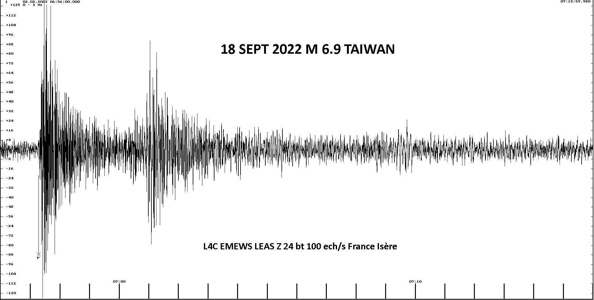 My recording of the earthquake 18 SEPT 2022 M 7.6 Mexique 18:05:08 (UTC) Loc 18.37 N ; 103.25 W Depth 25 km from France in Isère
