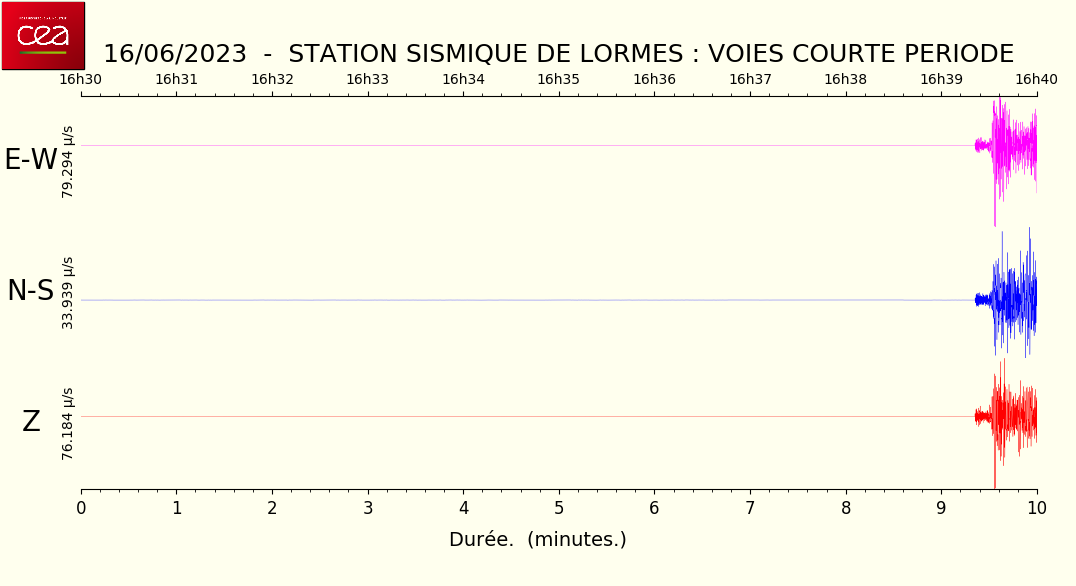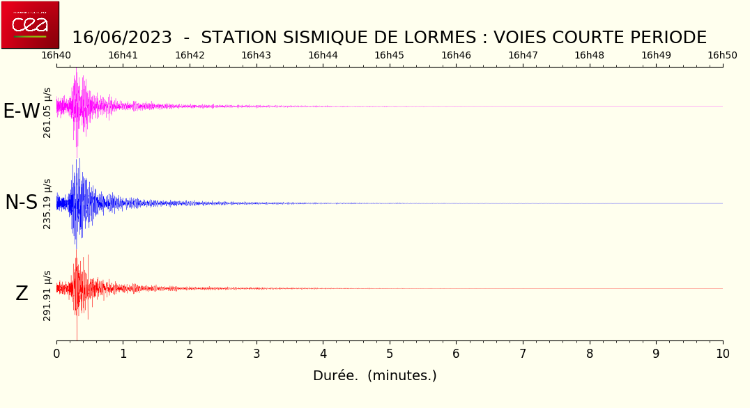 Fichier de la courbe brute au format MSEED L'enregistrement de la station du CEA à Lormes