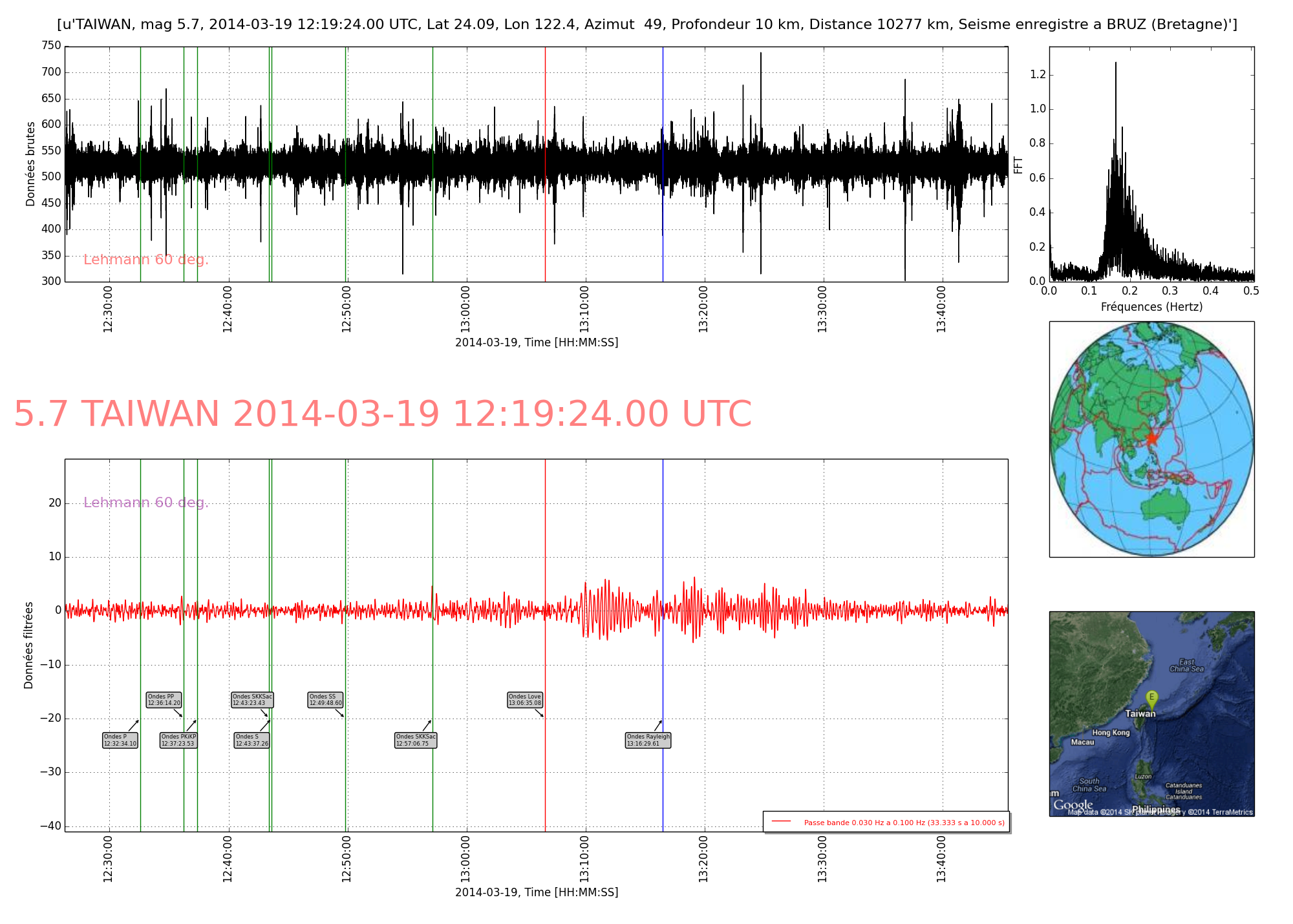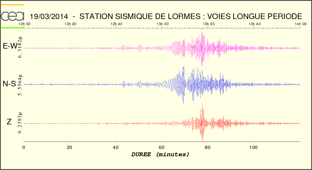 Les ondes P et S sont très faibles voire inexistantes. Les ondes de surface sont par contre bien marquées