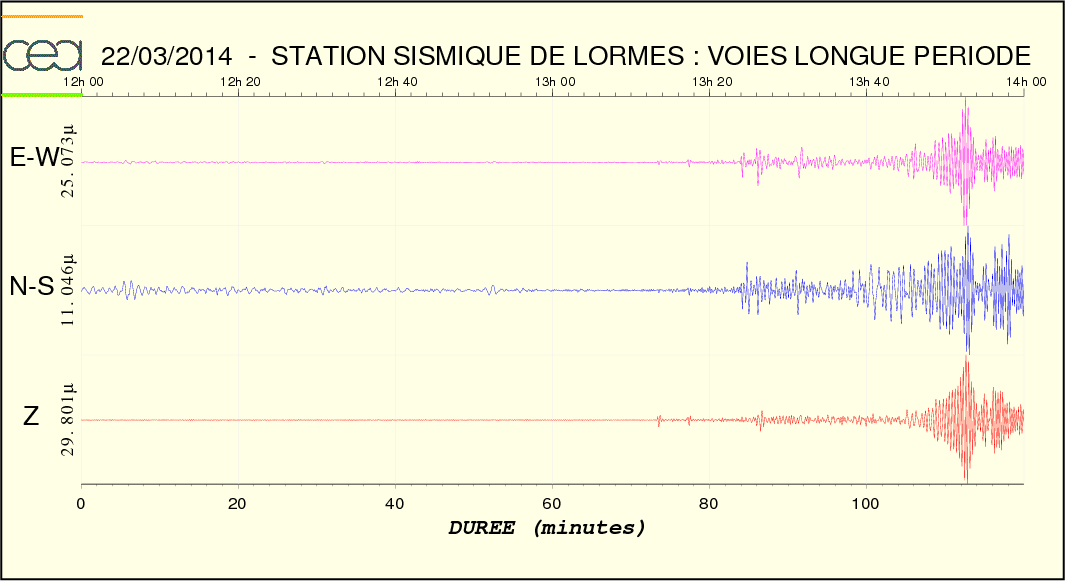 Les ondes P et S sont très faibles. Les ondes de surface sont présente