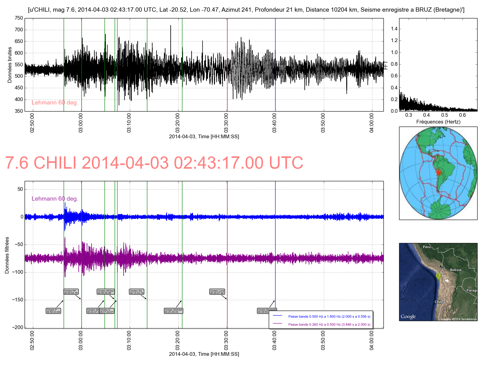 Courbe 2: Les ondes P seules (gamme de fréquence 0.5Hz à 1.8Hz et 3.846s à 2s)