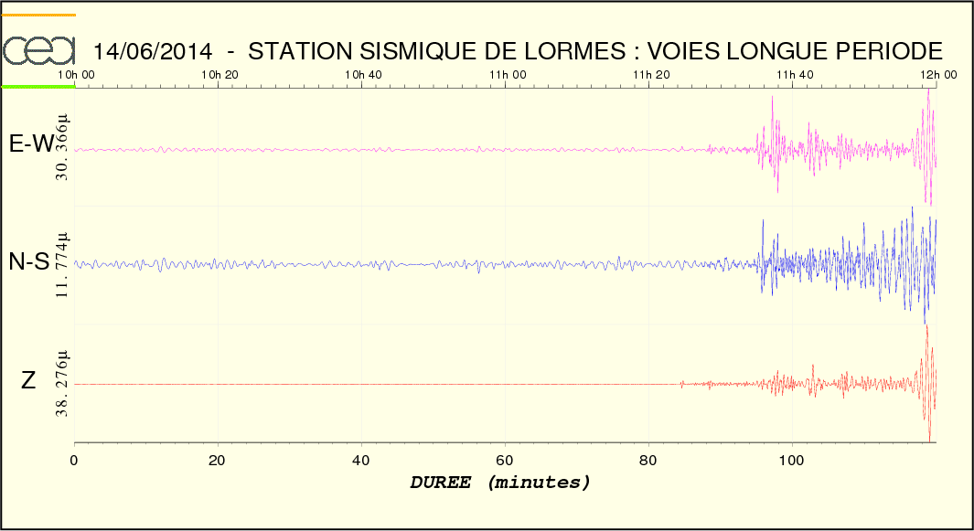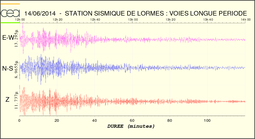 Fichier des temps de trajet des ondes Fichier de la courbe brute au format SAC Fichier de la courbe brute au format MSEED L'enregistrement de la station du CEA à Lormes