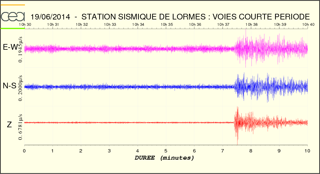 Ma courbe, que des ondes P. Pas d'ondes de S ni de surface.