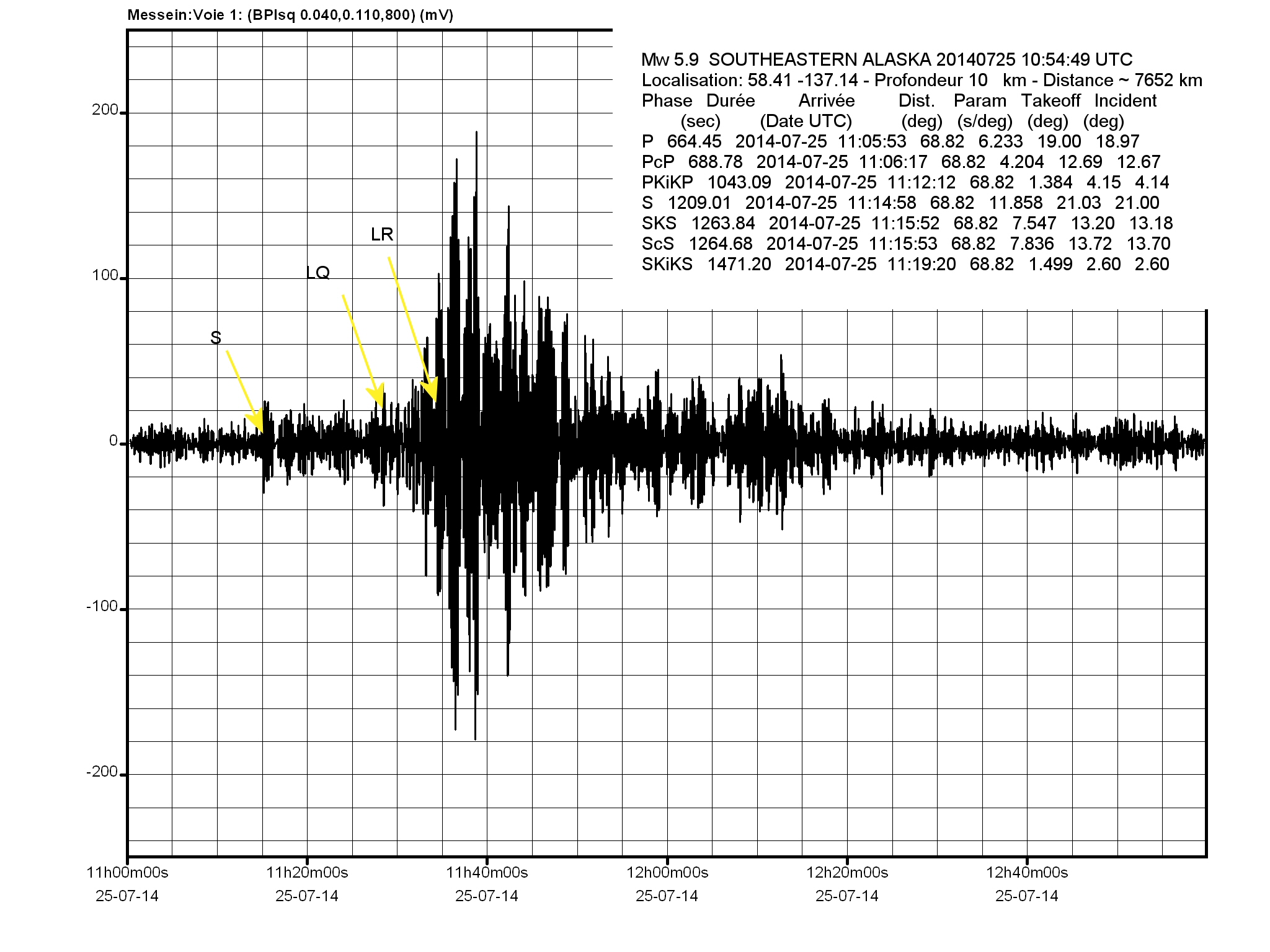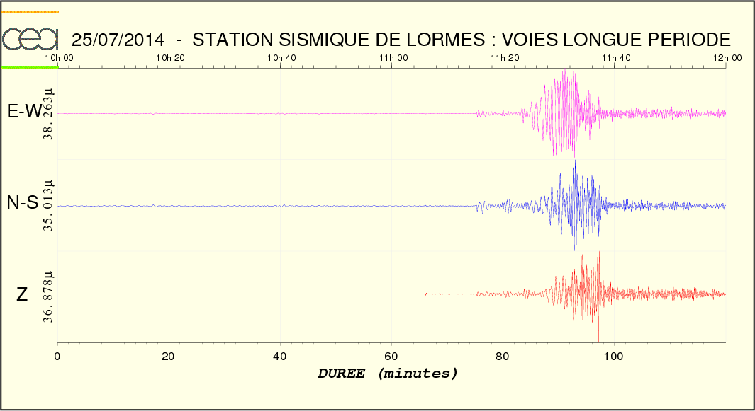 - Temps arrivée onde S : 11:14:48