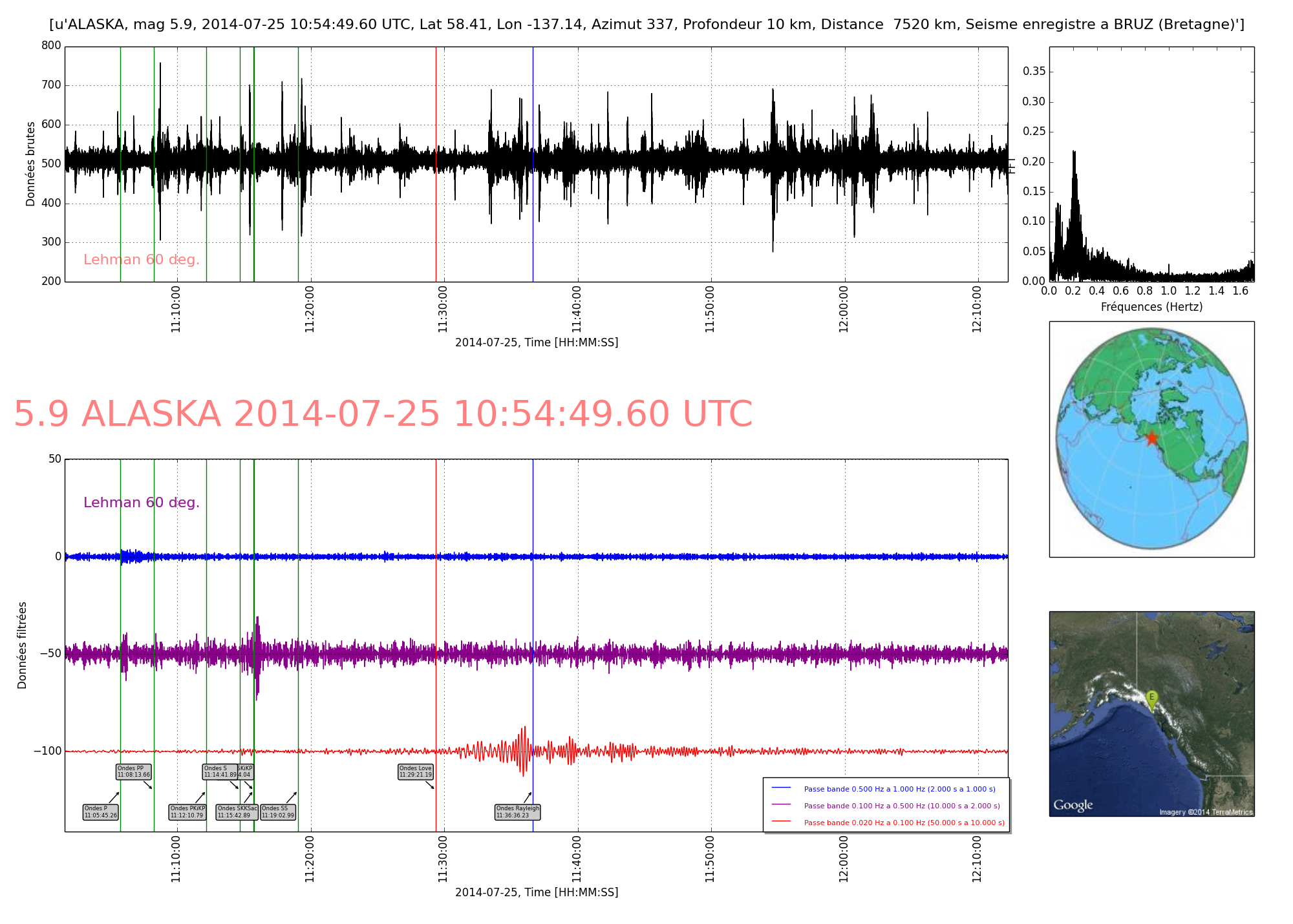 - Temps arrivée onde P : 11:05:45