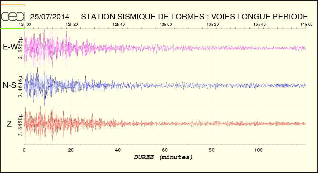Courbe 1: Lehman Fichier des temps de trajet des ondes Fichier de la courbe brute au format SAC Fichier de la courbe brute au format MSEED L'enregistrement de la station du CEA à Lormes