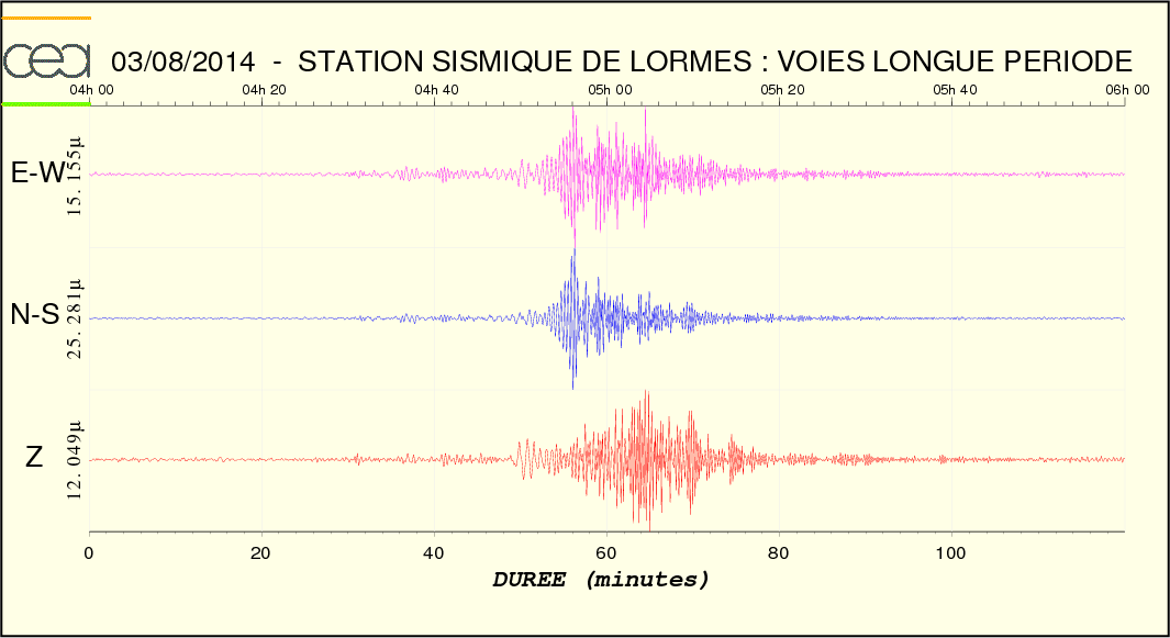 Fichier des temps de trajet des ondes Fichier de la courbe brute au format SAC Fichier de la courbe brute au format MSEED L'enregistrement de la station du CEA à Lormes