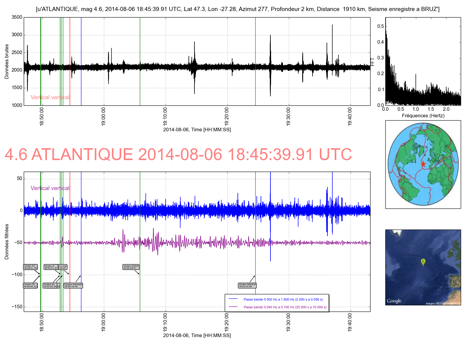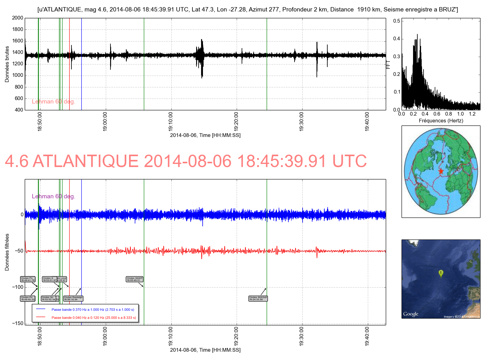 les ondes P sont bien marquées sur le Lehman. Les ondes S le sont elles sur le Vertical. Les ondes de surfaces sont bien présentes sur les deux capteurs.