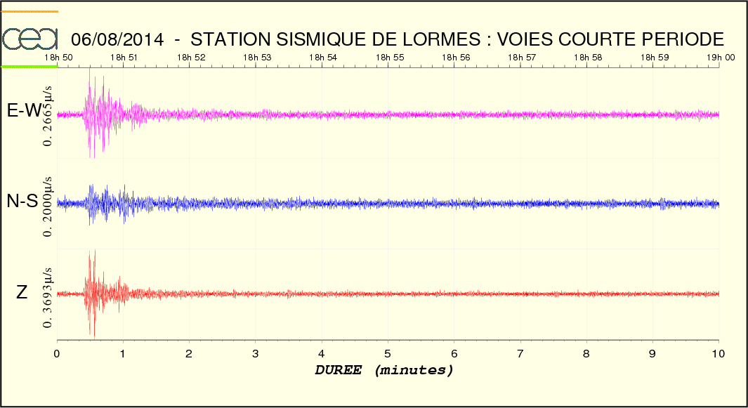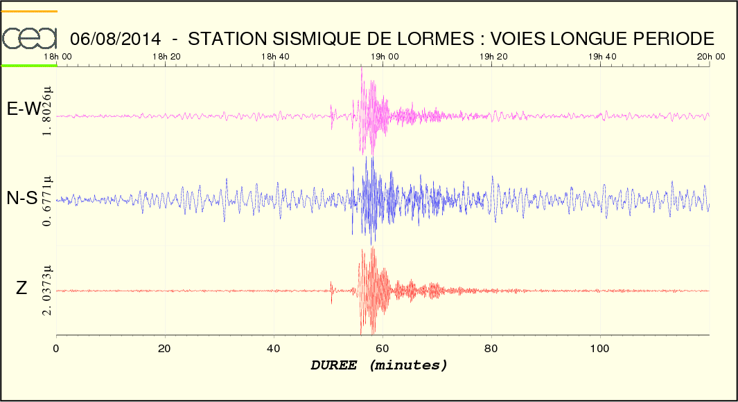 Fichier de la courbe brute au format MSEED L'enregistrement de la station du CEA à Lormes