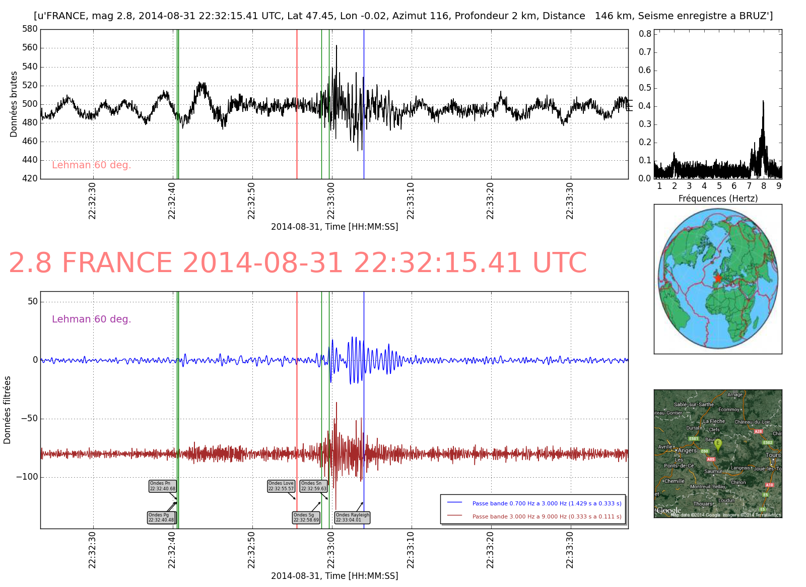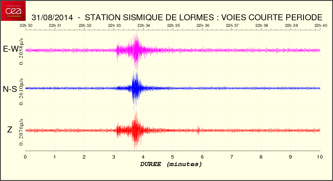 - Temps arrivée onde P : 22:32:40.80