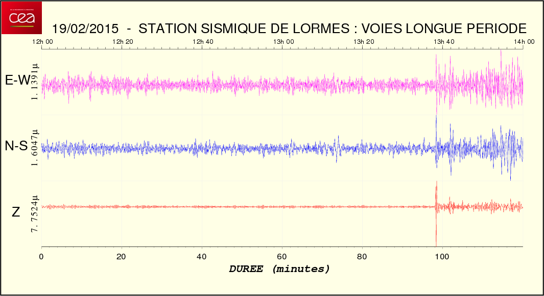 Fichier des temps de trajet des ondes Fichier de la courbe brute au format SAC Fichier de la courbe brute au format MSEED L'enregistrement de la station du CEA à Lormes