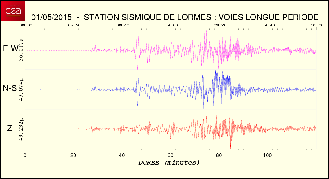 Fichier des temps de trajet des ondes Fichier de la courbe brute au format SAC Fichier de la courbe brute au format MSEED L'enregistrement de la station du CEA à Lormes