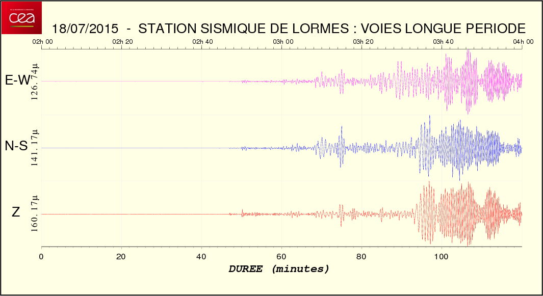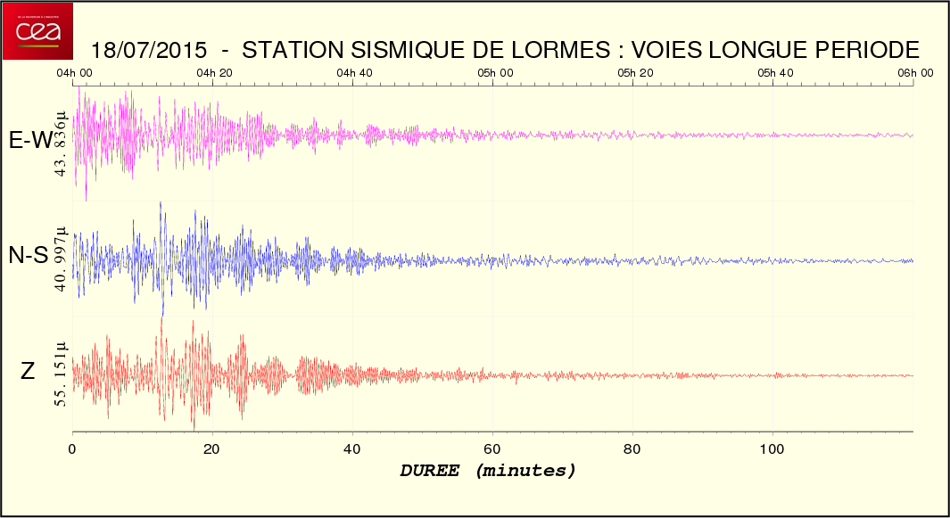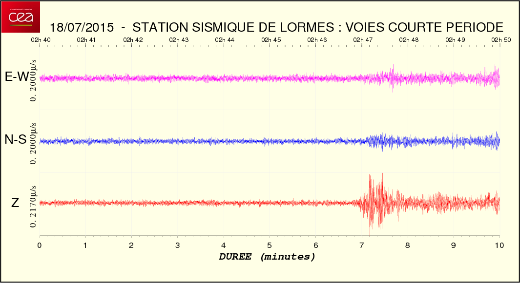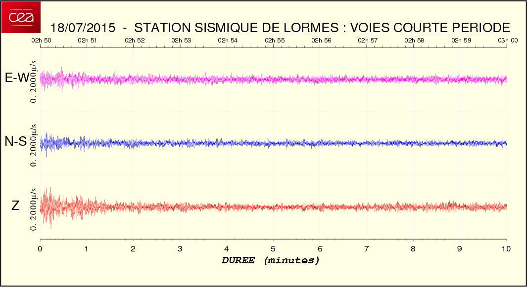 Fichier de la courbe brute au format SAC Fichier de la courbe brute au format MSEED L'enregistrement de la station du CEA à Lormes