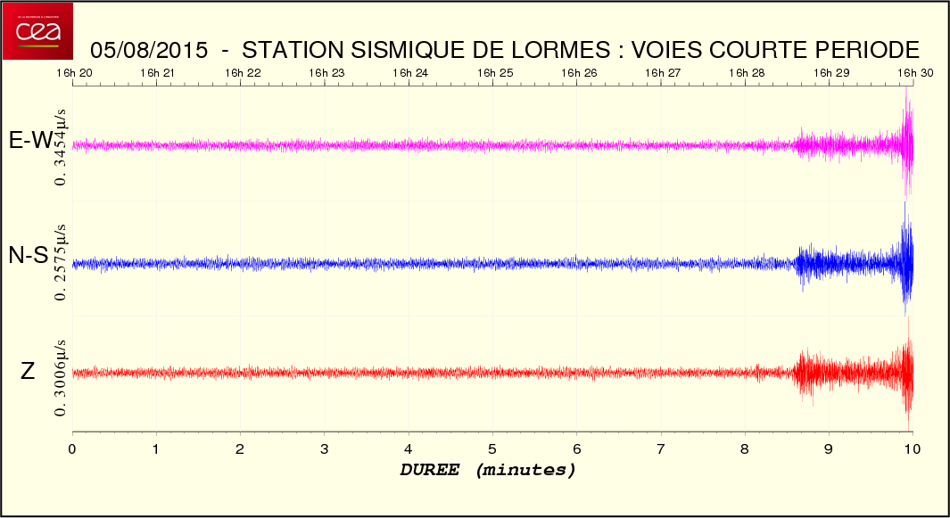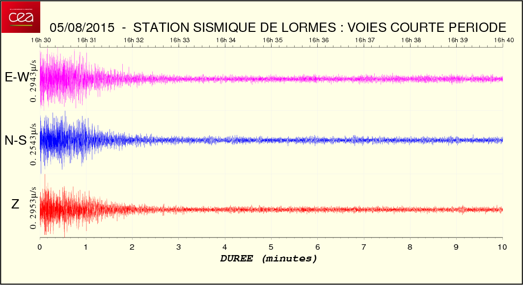 Fichier de la courbe brute au format SAC Fichier de la courbe brute au format MSEED L'enregistrement de la station du CEA à Lormes
