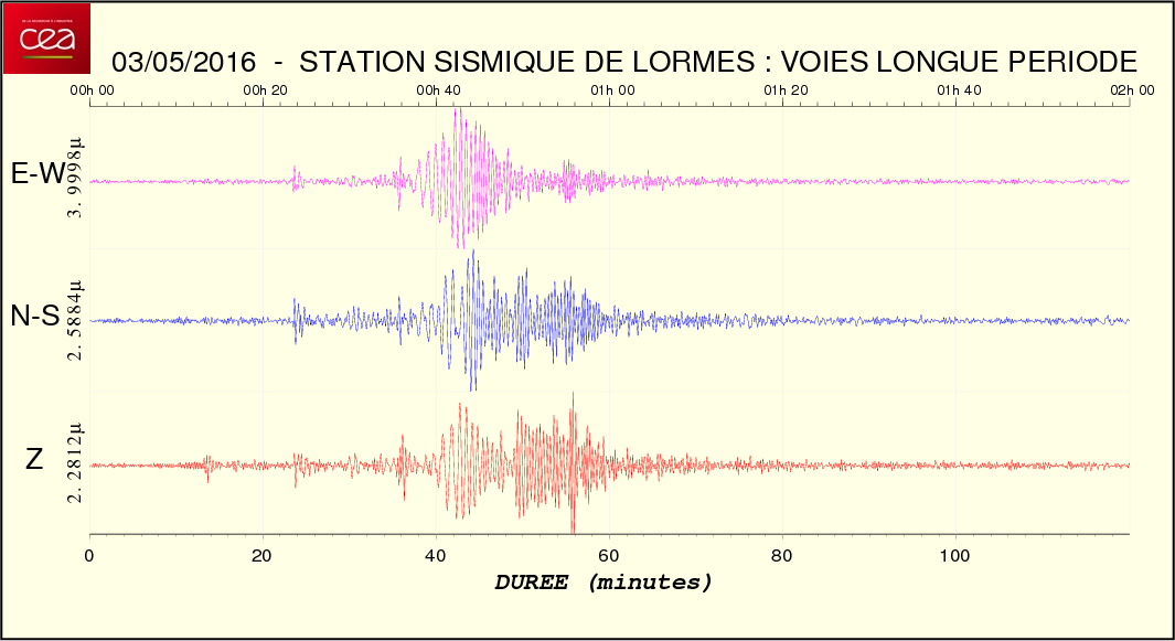 Fichier de la courbe brute au format SAC Fichier de la courbe brute au format MSEED L'enregistrement de la station du CEA à Lormes