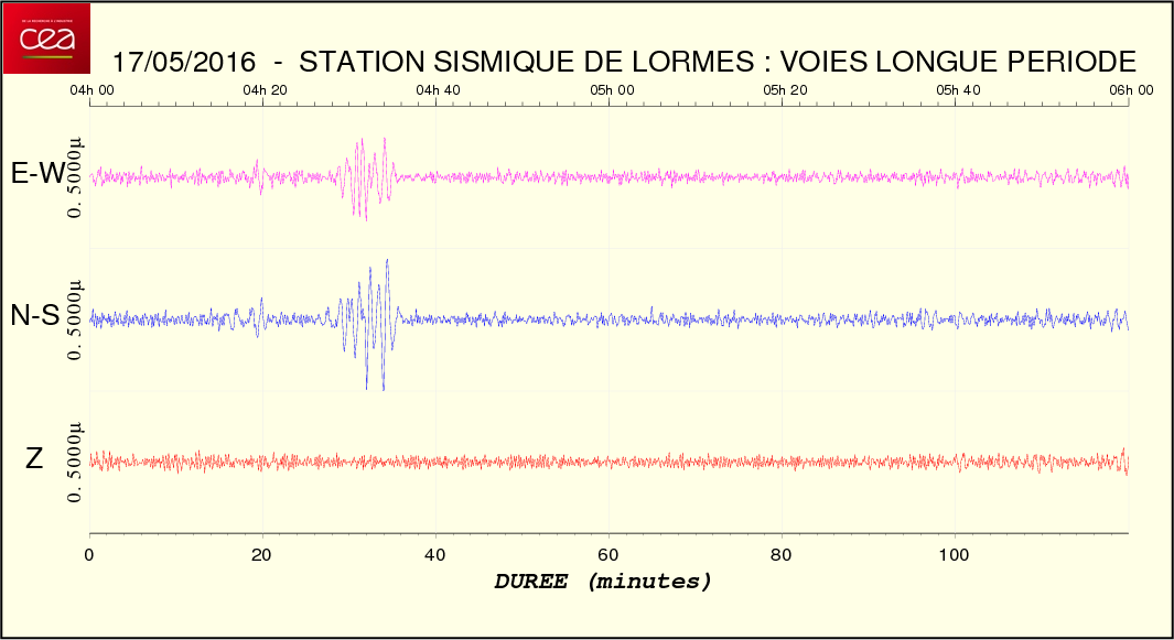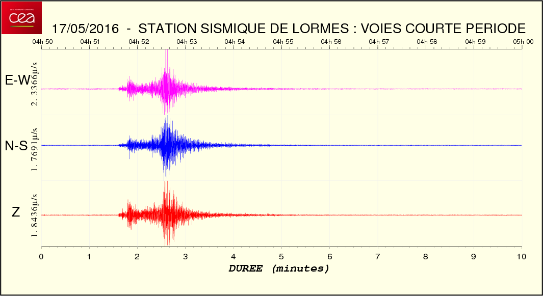 Fichier de la courbe brute au format SAC Fichier de la courbe brute au format MSEED L'enregistrement de la station du CEA à Lormes