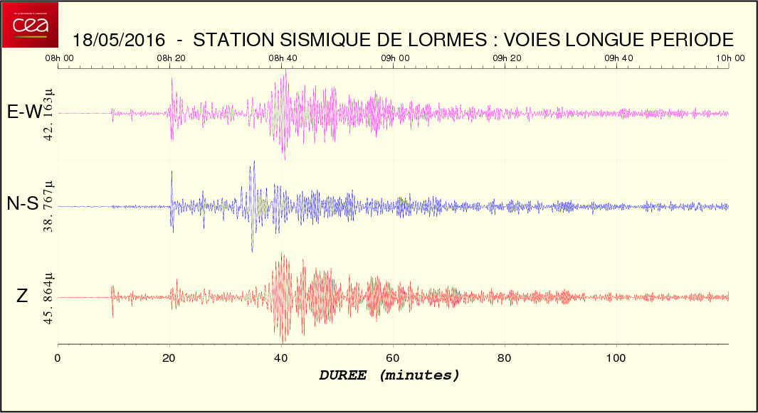 Fichier de la courbe brute au format SAC Fichier de la courbe brute au format MSEED L'enregistrement de la station du CEA à Lormes