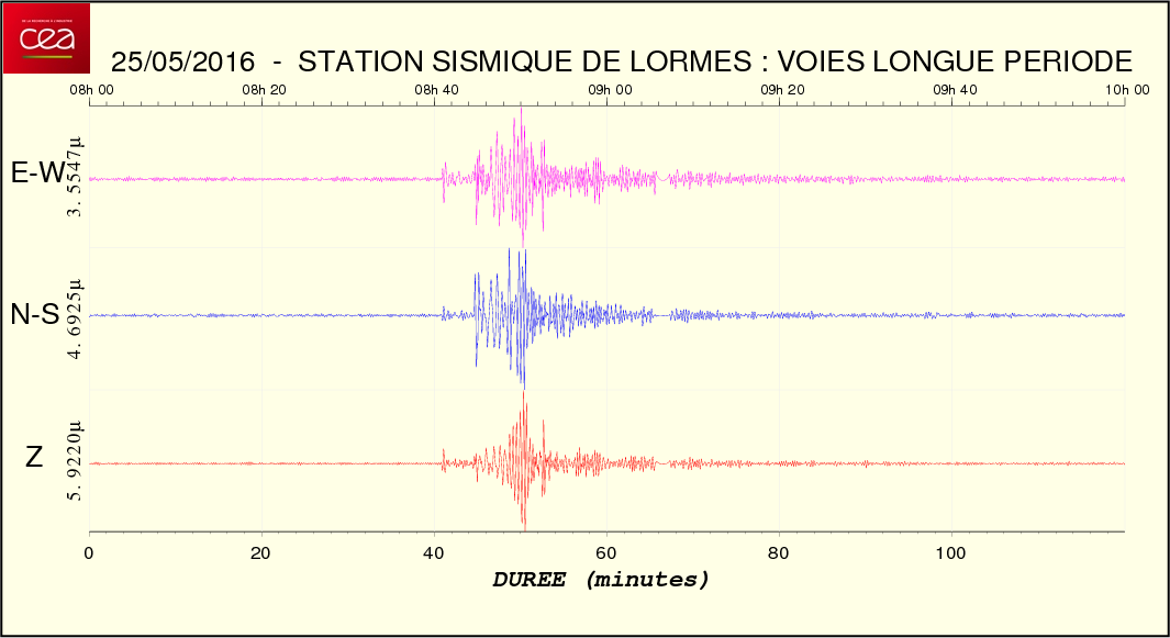 Fichier de la courbe brute au format SAC Fichier de la courbe brute au format MSEED L'enregistrement de la station du CEA à Lormes