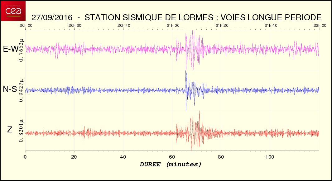 Fichier de la courbe brute au format SAC Fichier de la courbe brute au format MSEED L'enregistrement de la station du CEA à Lormes
