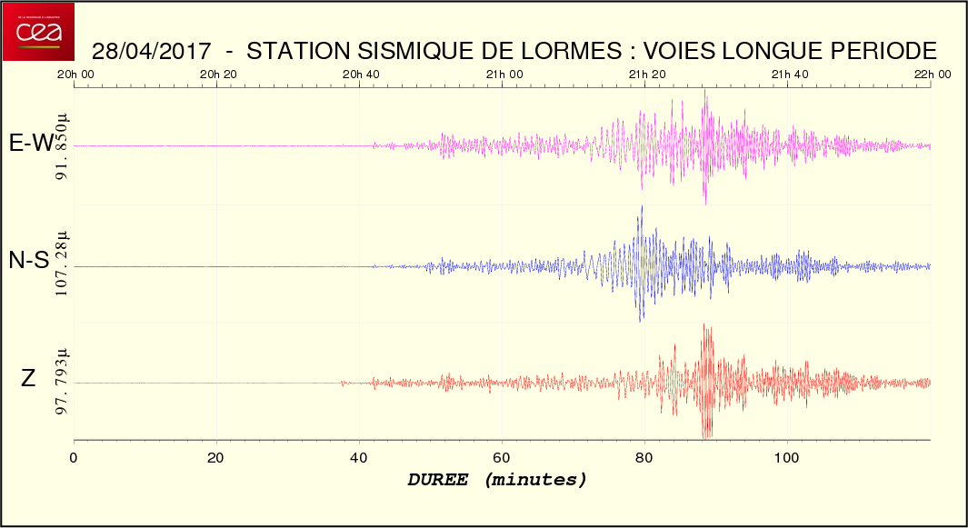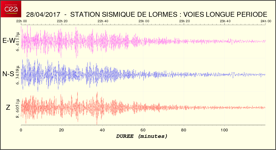 Fichier de la courbe brute au format SAC Fichier de la courbe brute au format MSEED L'enregistrement de la station du CEA à Lormes