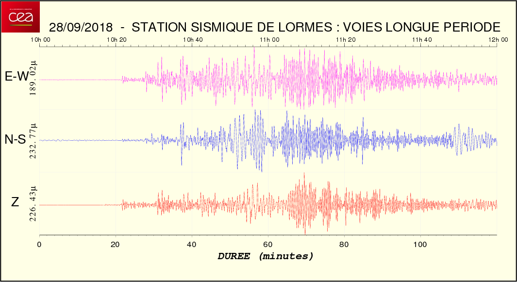 Fichier de la courbe brute au format SAC Fichier de la courbe brute au format MSEED L'enregistrement de la station du CEA à Lormes
