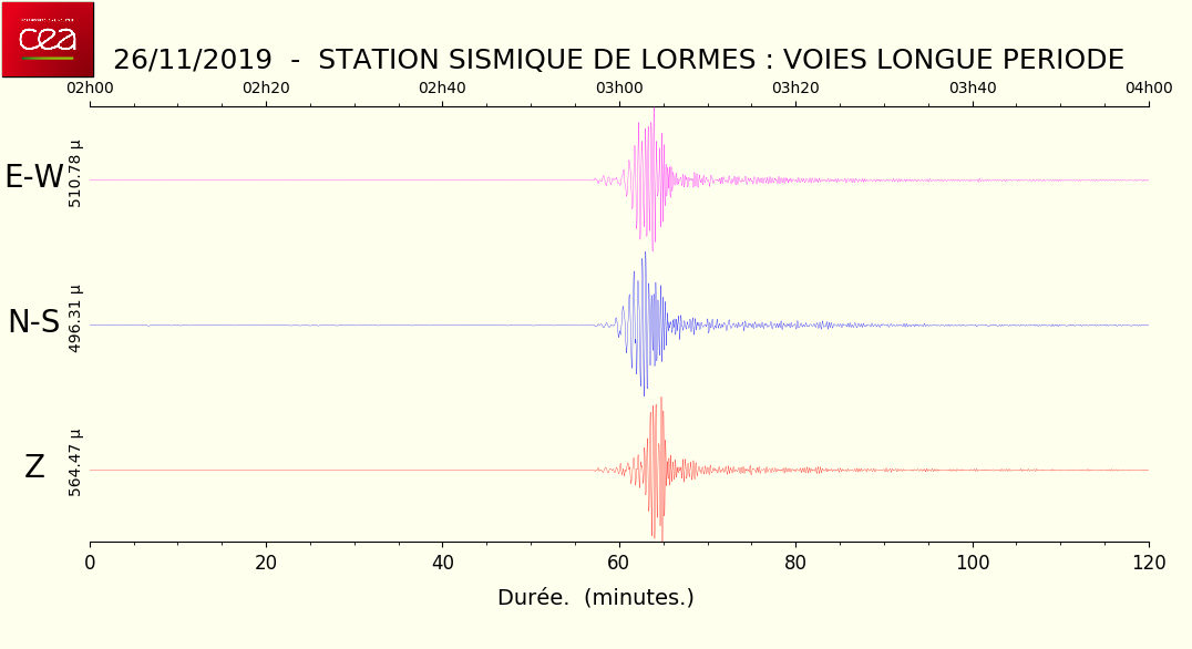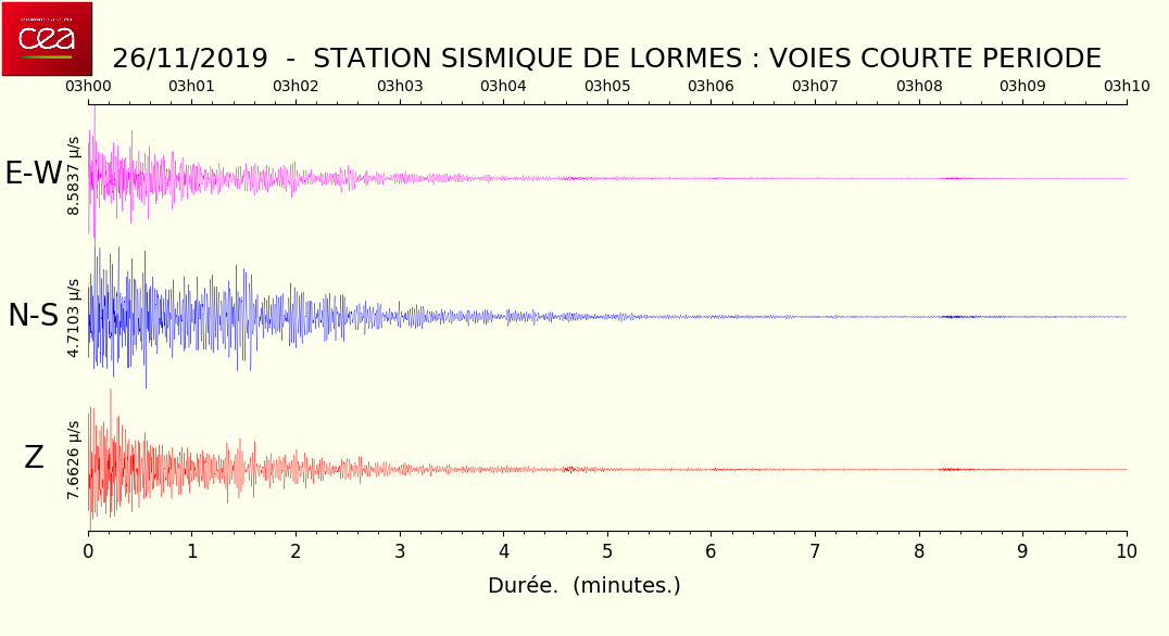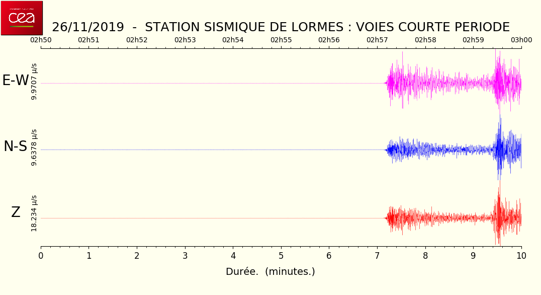 Fichier de la courbe brute au format SAC Fichier de la courbe brute au format MSEED L'enregistrement de la station du CEA à Lormes