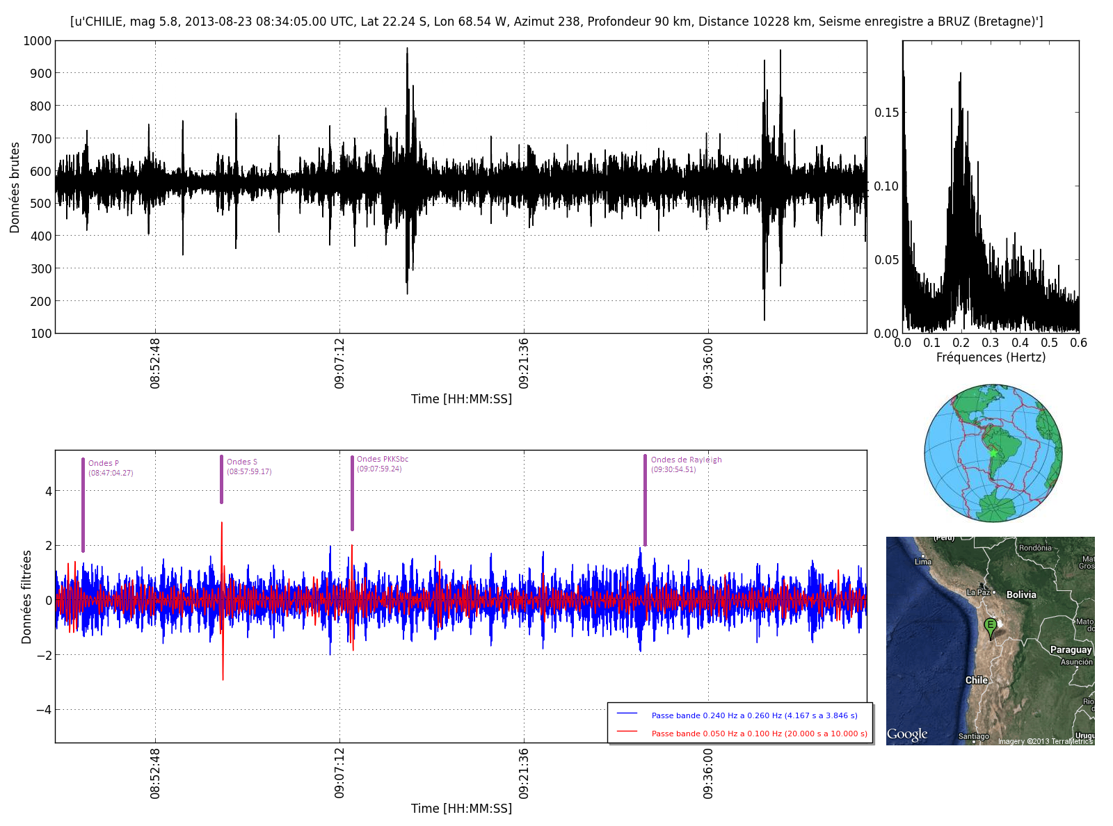 Ma courbe, signal faible mais les ondes P et S sont bien présentes au temps prévus. Cela peut se comprendre pour un 5.8 à 10200 Km.