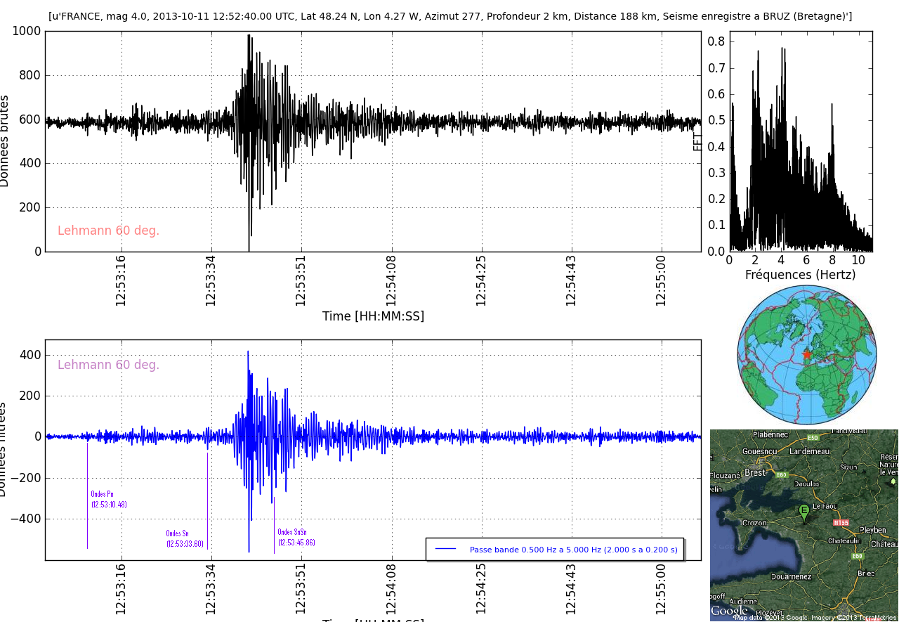 Les ondes Pn et Sn sont quasiment inexistantes. L'amplitude de mon signal est par contre énorme (de 0 à 1000). Mon capteur a légèrement saturé sur les ondes de surface qui sont bien prononcées et confondues avec une partie des ondes Sg, SnSn.