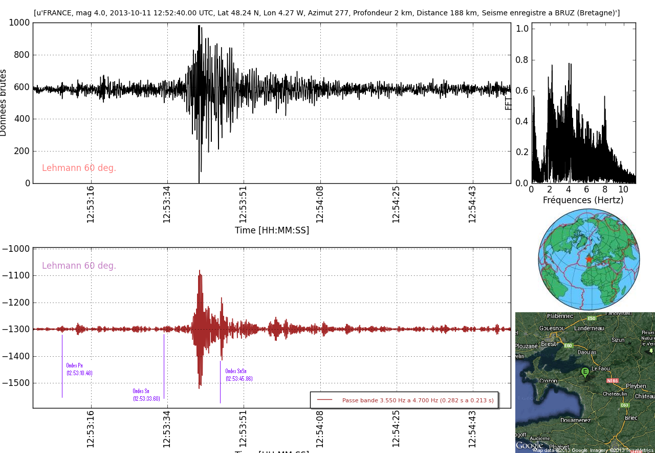 Courbe 3: courbe Bleue (filtrage de 2 s à 5 Hz), verte (filtrage de 2 s à 1.6 Hz) et marron (filtrage de 3.55 Hz à 4.7 Hz)