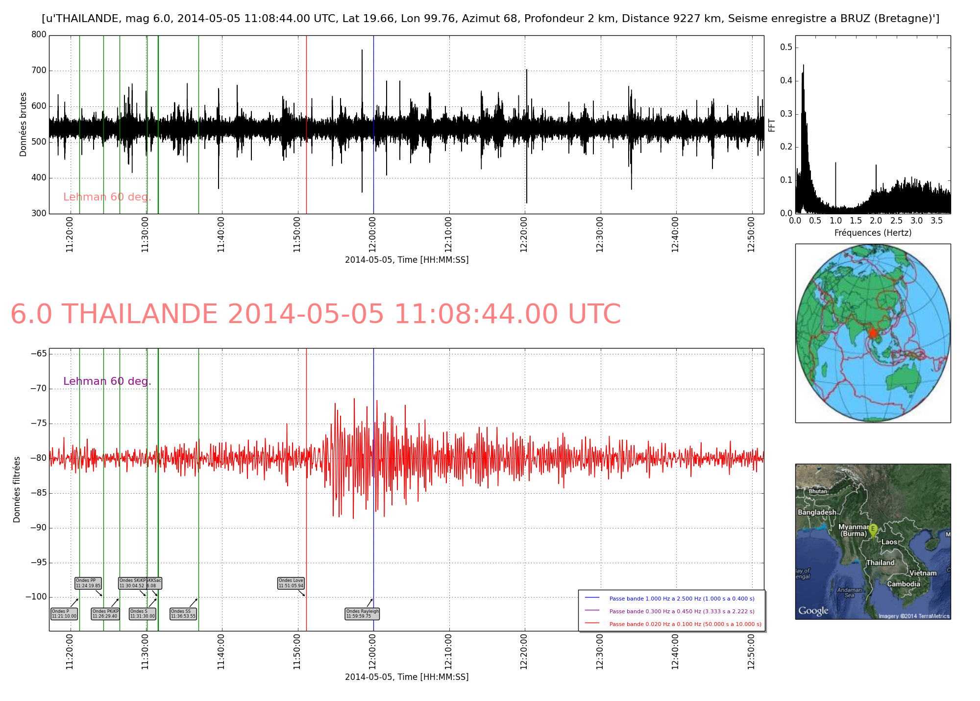 Courbe 1: Totalité des ondes Courbe 1: Ondes de surface Fichier des temps de trajet des ondes Fichier de la courbe brute au format SAC Fichier de la courbe brute au format MSEED L'enregistrement de la station du CEA à Lormes
