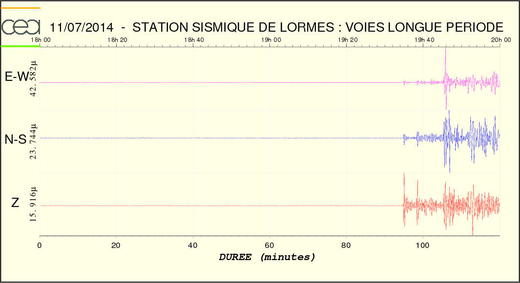 Courbe 1: Lehman Fichier des temps de trajet des ondes Fichier de la courbe brute au format SAC Fichier de la courbe brute au format MSEED L'enregistrement de la station du CEA à Lormes