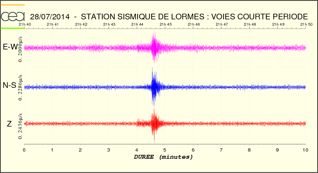 - Temps arrivée onde P : 21:43:39
