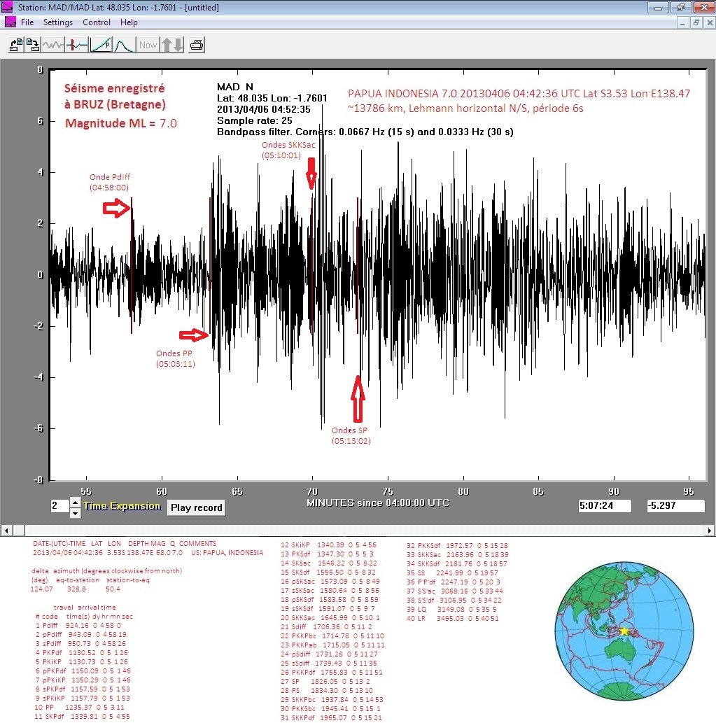 Courbe 2: onde Pdiff, PP, SKKSac et SP. Logiciel AmaSeis.