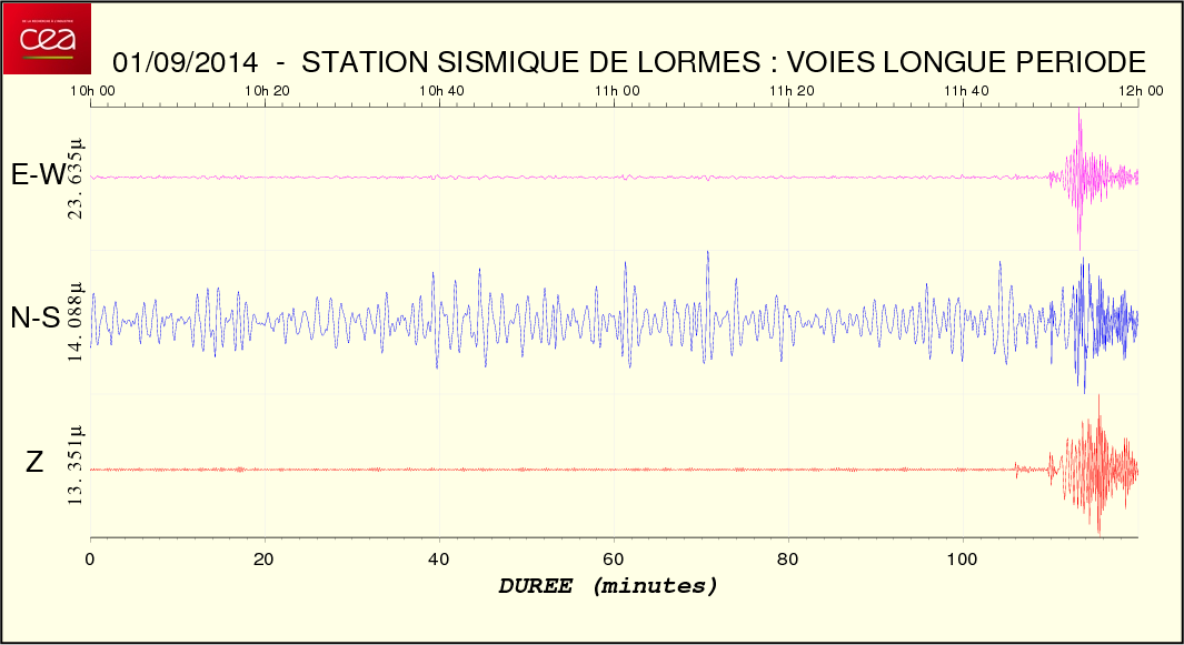 Fichier des temps de trajet des ondes Fichier de la courbe brute au format SAC Fichier de la courbe brute au format MSEED L'enregistrement de la station du CEA à Lormes