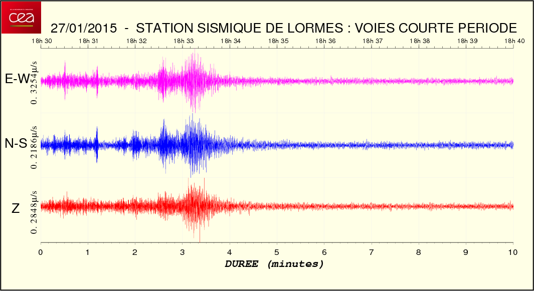 Fichier des temps de trajet des ondes Fichier de la courbe brute au format SAC Fichier de la courbe brute au format MSEED L'enregistrement de la station du CEA à Lormes