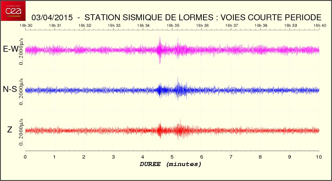 Fichier des temps de trajet des ondes Fichier de la courbe brute au format SAC Fichier de la courbe brute au format MSEED L'enregistrement de la station du CEA à Lormes