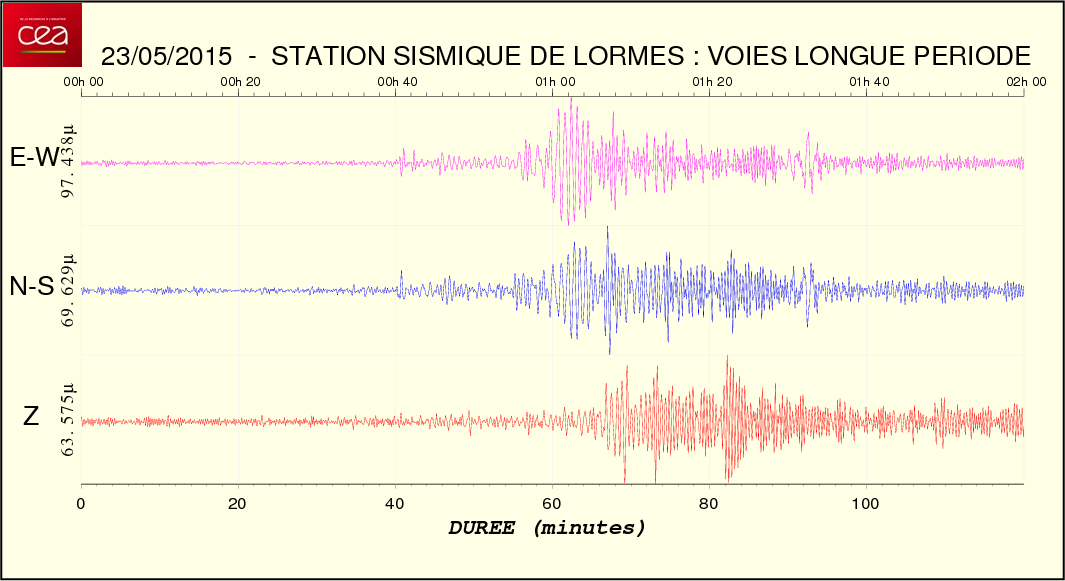 Fichier des temps de trajet des ondes Fichier de la courbe brute au format SAC Fichier de la courbe brute au format MSEED L'enregistrement de la station du CEA à Lormes