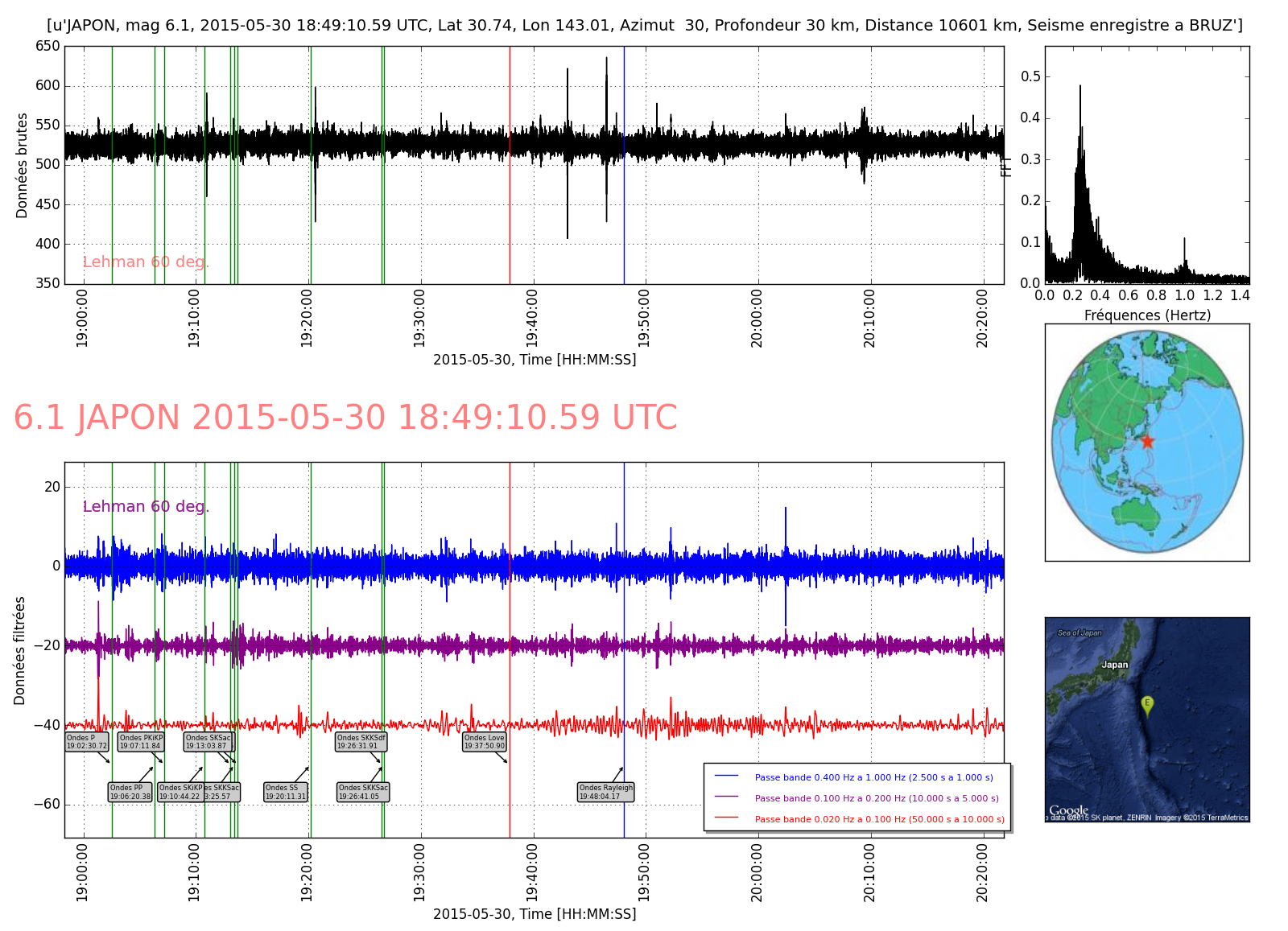Courbe 1: Lehman Fichier des temps de trajet des ondes Fichier de la courbe brute au format SAC Fichier de la courbe brute au format MSEED L'enregistrement de la station du CEA à Lormes
