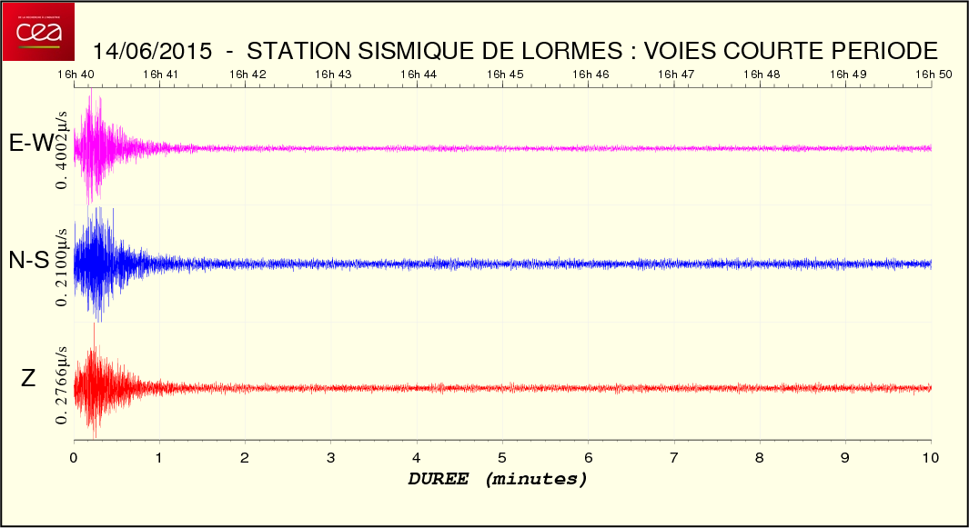 Fichier de la courbe brute au format SAC Fichier de la courbe brute au format MSEED L'enregistrement de la station du CEA à Lormes