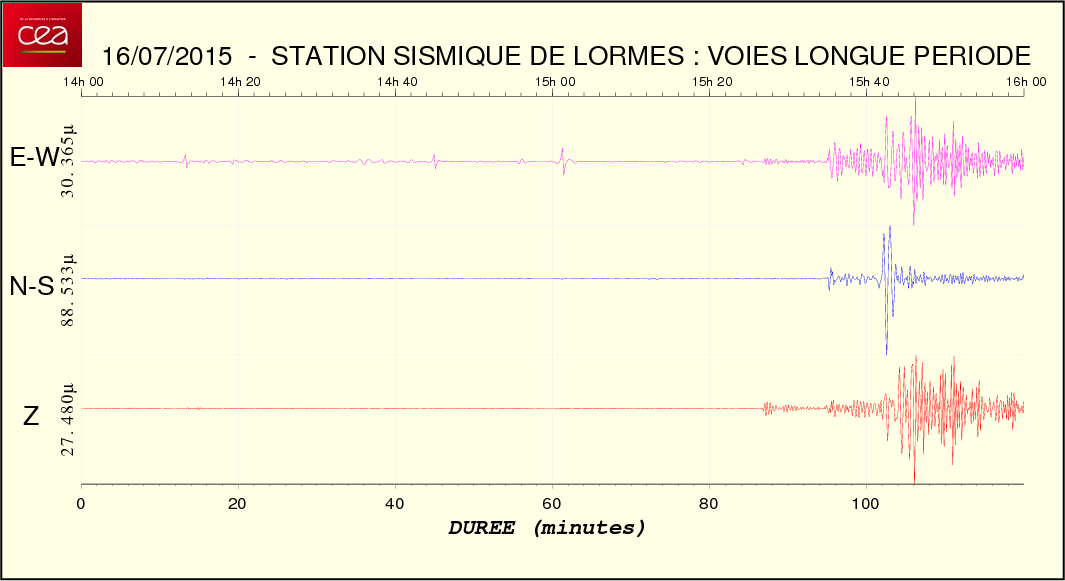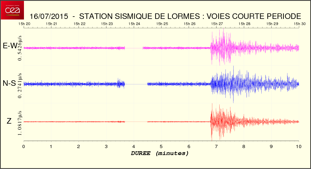Fichier de la courbe brute au format SAC Fichier de la courbe brute au format MSEED L'enregistrement de la station du CEA à Lormes