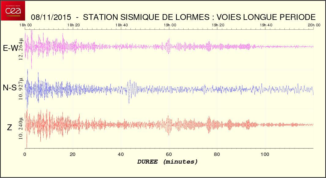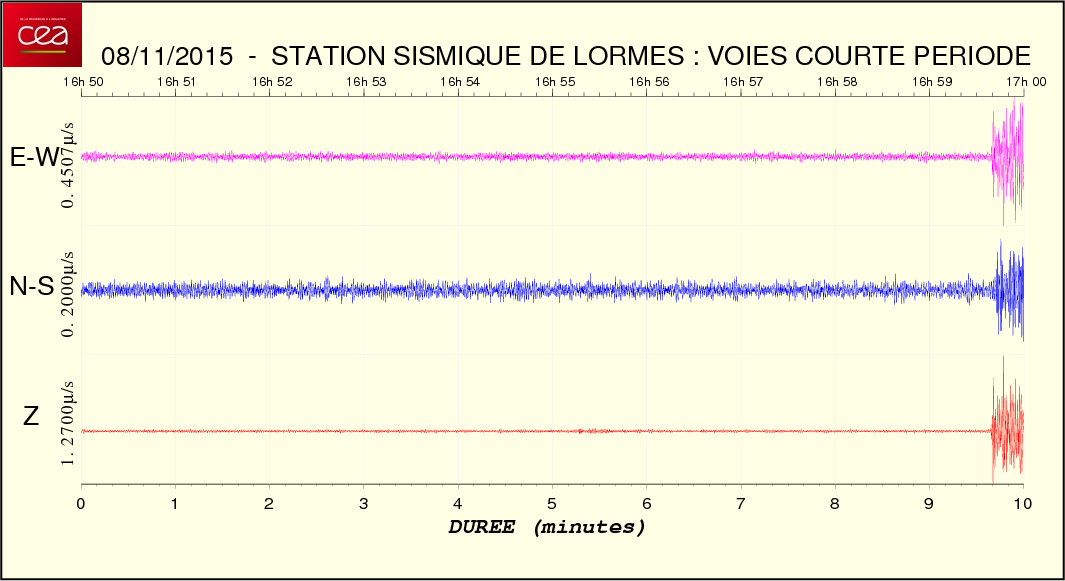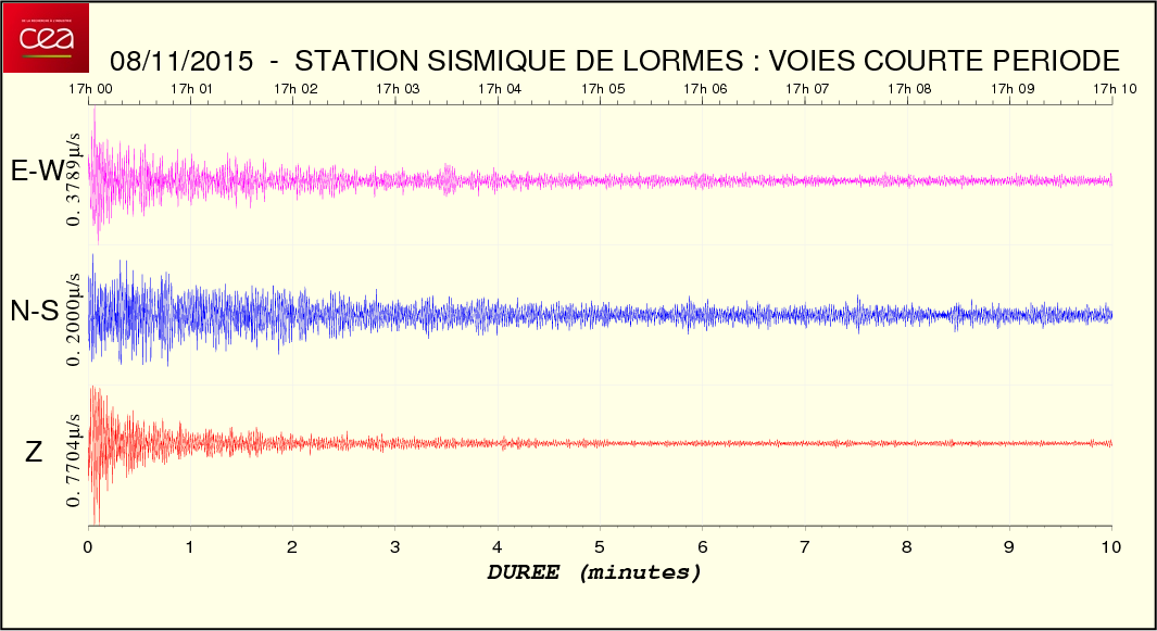 Fichier de la courbe brute au format SAC Fichier de la courbe brute au format MSEED L'enregistrement de la station du CEA à Lormes