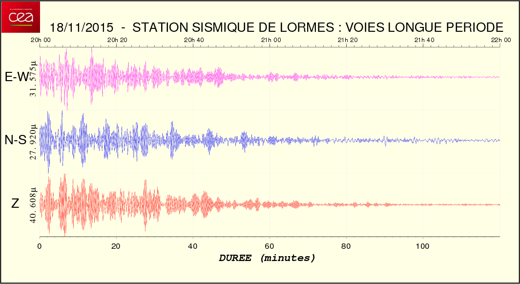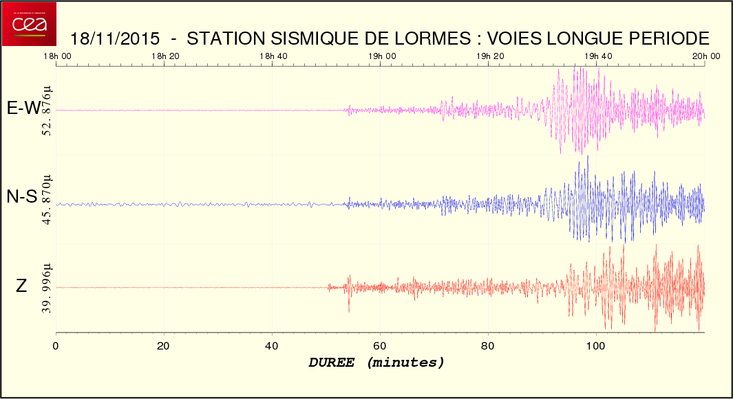 Fichier de la courbe brute au format SAC Fichier de la courbe brute au format MSEED L'enregistrement de la station du CEA à Lormes