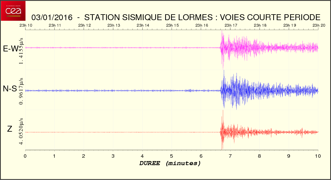 Fichier de la courbe brute au format SAC Fichier de la courbe brute au format MSEED L'enregistrement de la station du CEA à Lormes