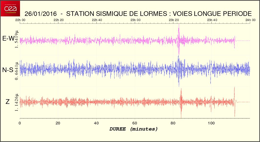 Fichier de la courbe brute au format SAC Fichier de la courbe brute au format MSEED L'enregistrement de la station du CEA à Lormes