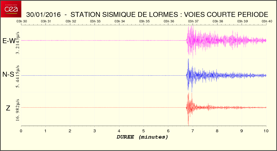 Fichier de la courbe brute au format SAC Fichier de la courbe brute au format MSEED L'enregistrement de la station du CEA à Lormes