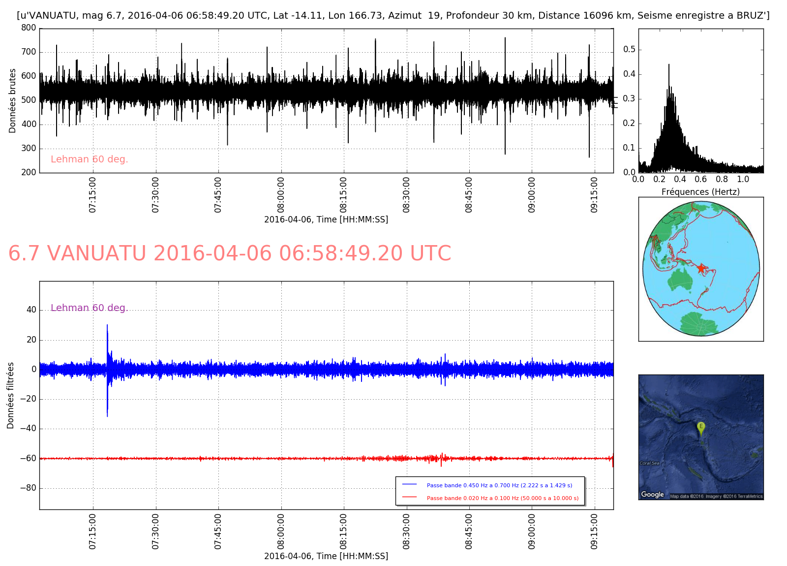 Fichier de la courbe brute au format SAC Fichier de la courbe brute au format MSEED L'enregistrement de la station du CEA à Lormes
