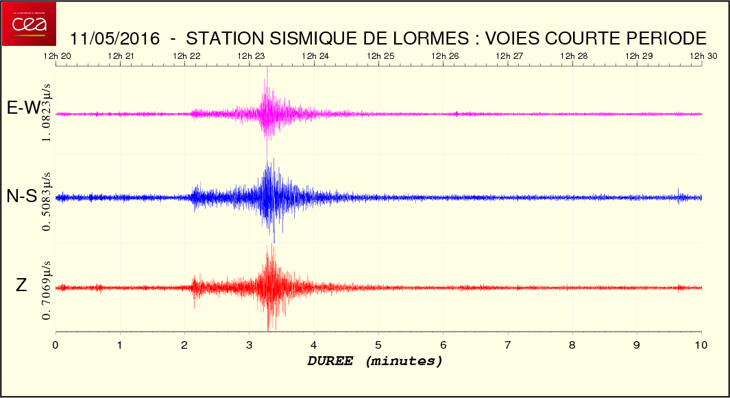 Fichier de la courbe brute au format SAC Fichier de la courbe brute au format MSEED L'enregistrement de la station du CEA à Lormes