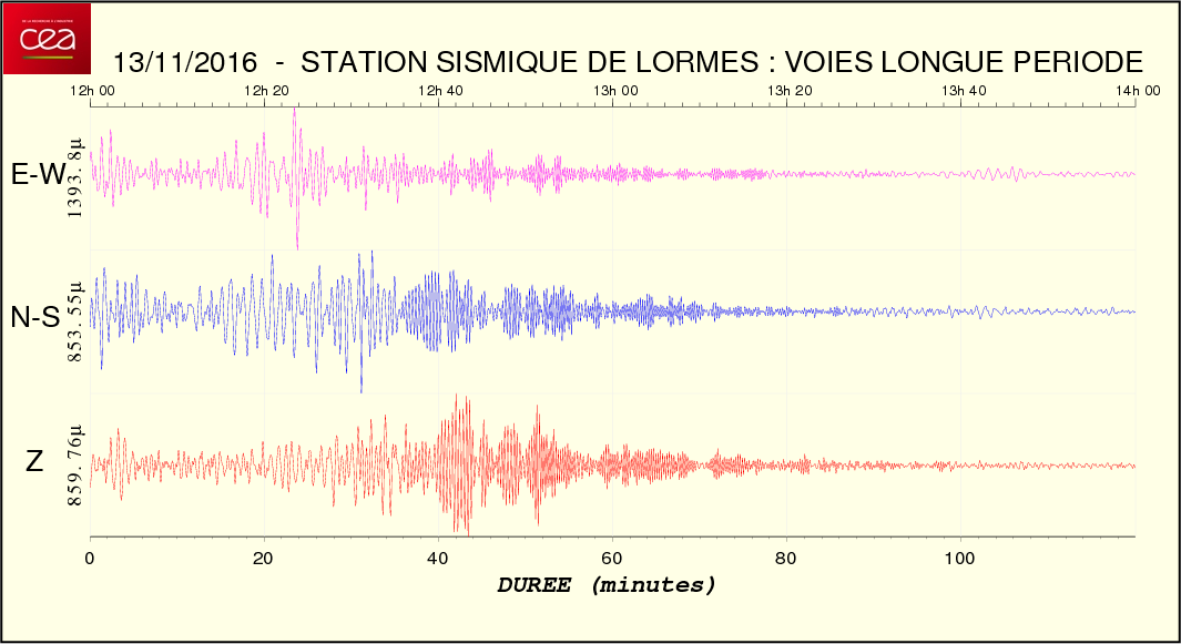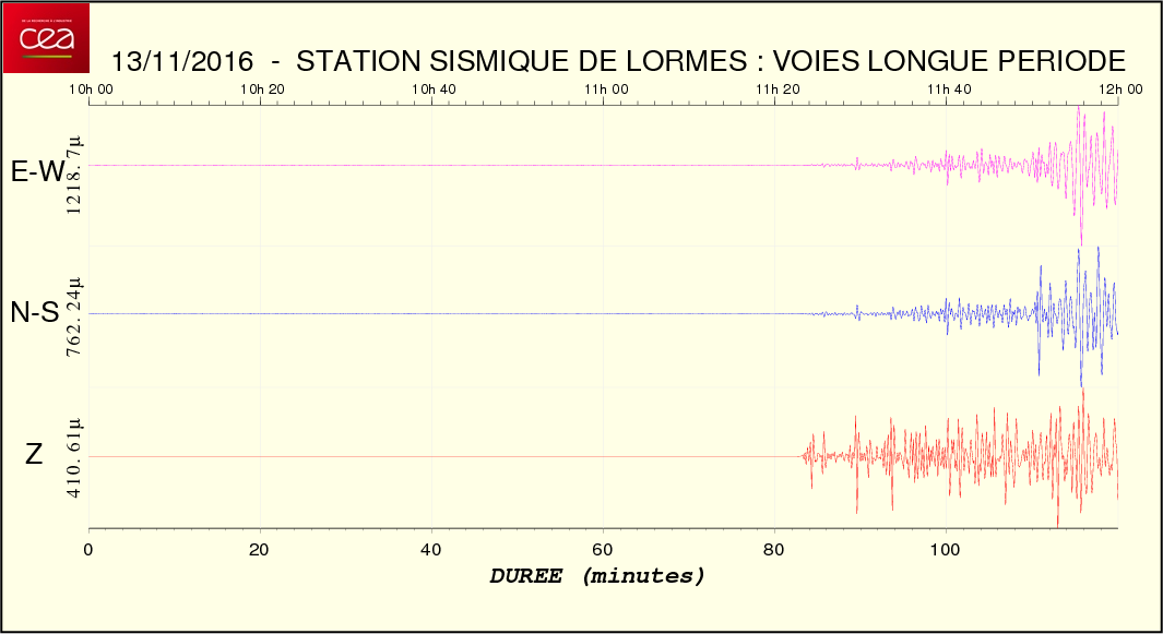 Fichier de la courbe brute au format SAC Fichier de la courbe brute au format MSEED L'enregistrement de la station du CEA à Lormes