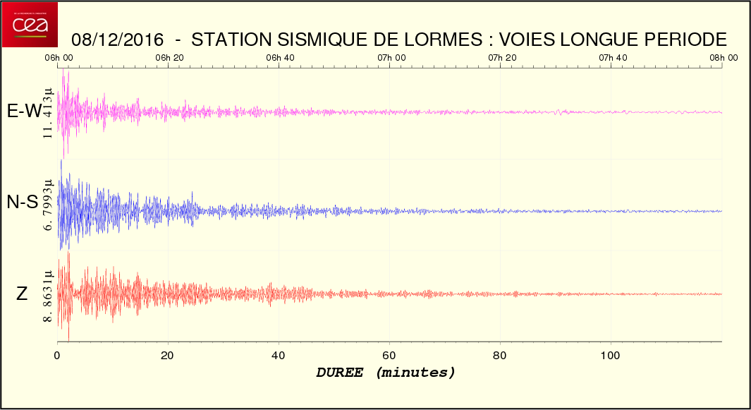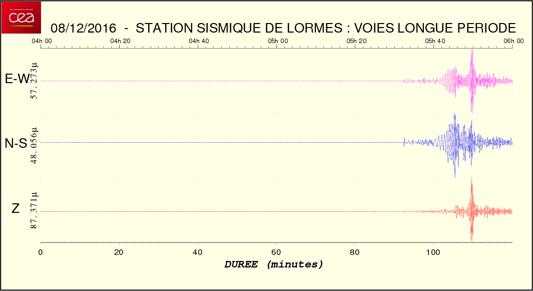 Fichier de la courbe brute au format SAC Fichier de la courbe brute au format MSEED L'enregistrement de la station du CEA à Lormes
