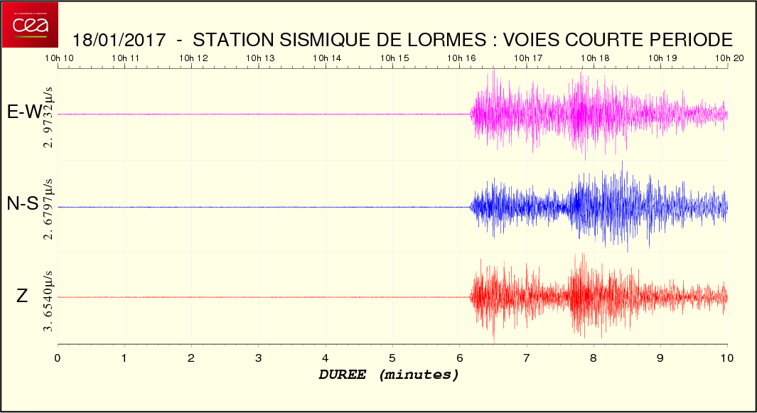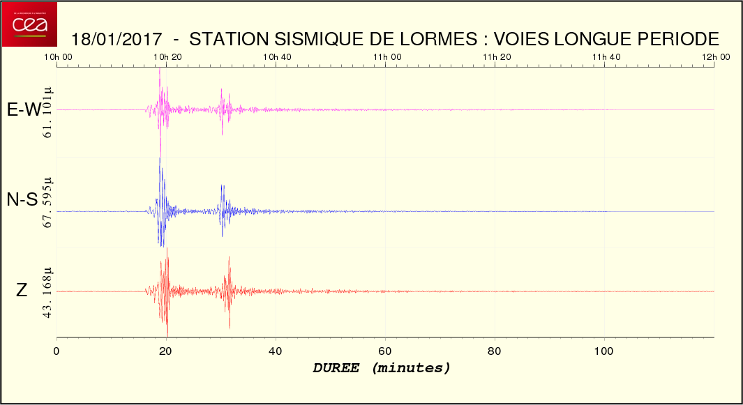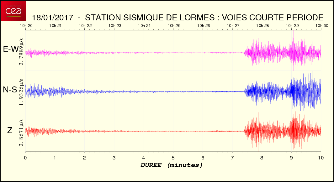 Fichier de la courbe brute au format SAC Fichier de la courbe brute au format MSEED L'enregistrement de la station du CEA à Lormes